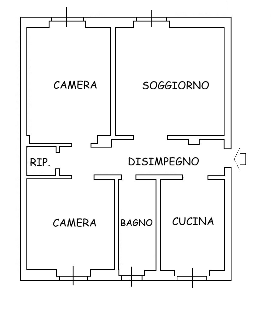 L'appartamento è composto da: ingresso in disimpegno, soggiorno, cucina abitabile, due camere da letto, bagno finestrato e ripostiglio, completa la soluzione una cantina di pertinenza al primo piano interrato dello stabile.